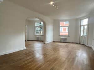 L’appartement se compose d’un hall d’entrée, d’un vaste séjour accueillant salon et salle à manger, d’une cuisine entièrement équipée et neuve (four, micro-ondes, taques de cuisson, lave-vaisselle), d’une salle de douche avec toilette et de trois belles chambres. Une cave privative complète le bien.