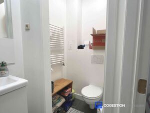 Situé au 2e étage, cet appartement rénové récemment se compose d’un hall d’entrée, d’un séjour lumineux, d’une grande cuisine super-équipée avec espace salle à manger, d’une chambre avec salle de douche attenante avec toilette ainsi que d’une salle de douche supplémentaire avec espace buanderie et une seconde toilette.