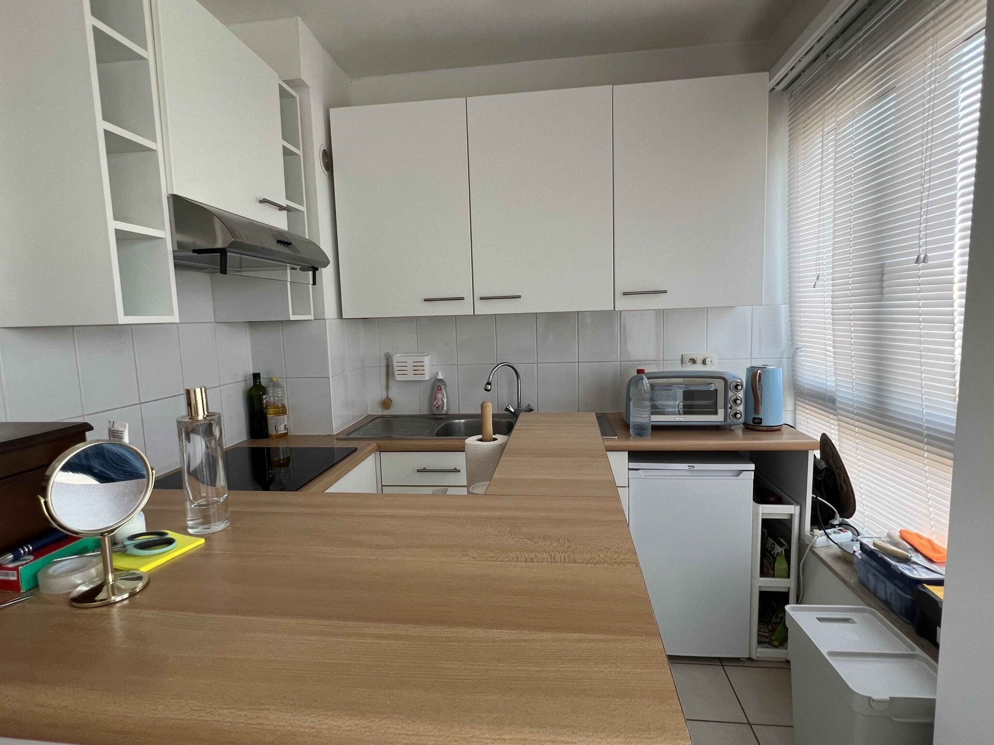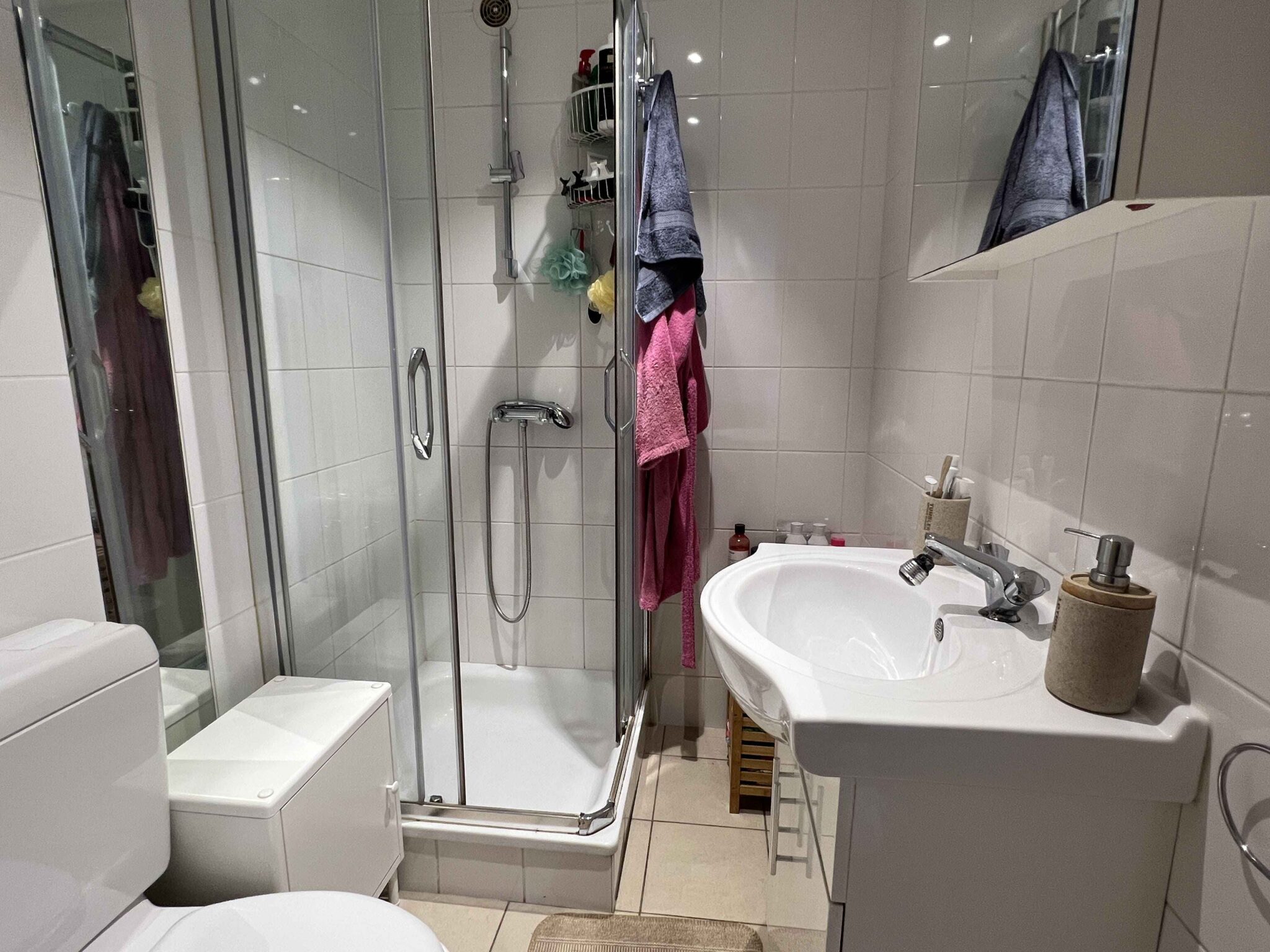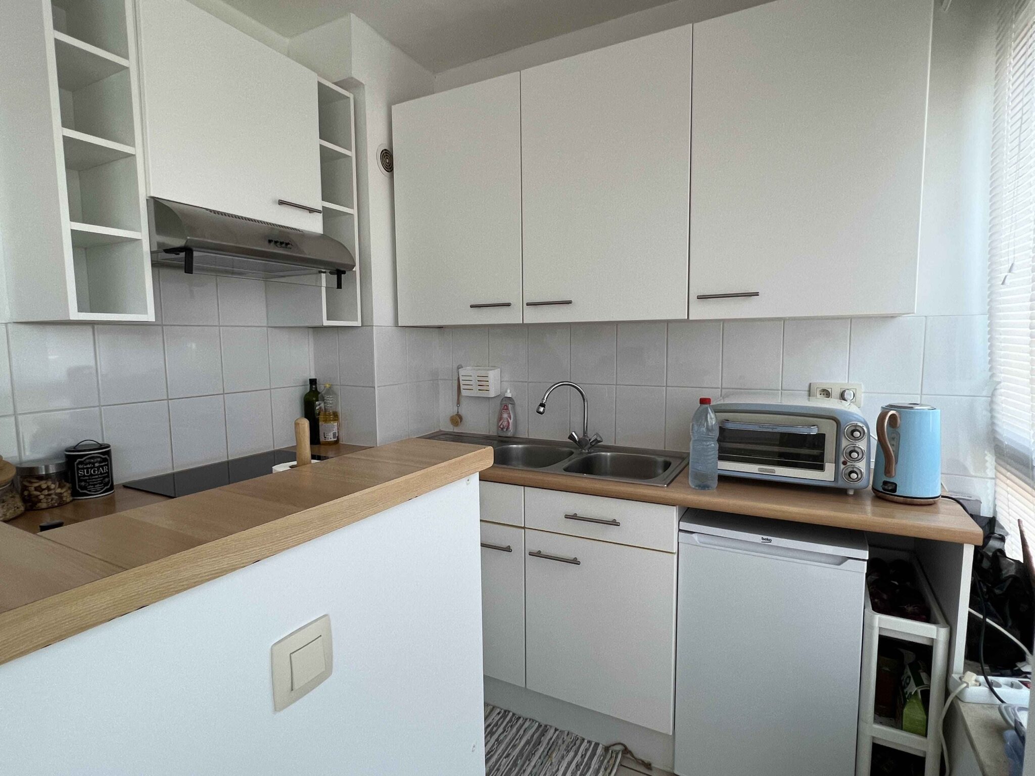 L’appartement se compose comme suit : hall d’entrée, une pièce à vivre qui donne sur une cuisine ouverte, une chambre, une salle de douche avec toilette.