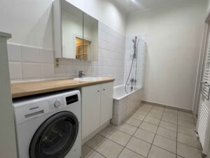 Une pièce à vivre (+-29 m²), une cuisine semi-équipée (+- 7,5 m²), un hall de nuit (+-6,5 m²), Une très grande chambre (+- 21 m²) , une petite chambre ou bureau avec un placard intégré (+- 7 m²), une salle de bain (+-8 m²).